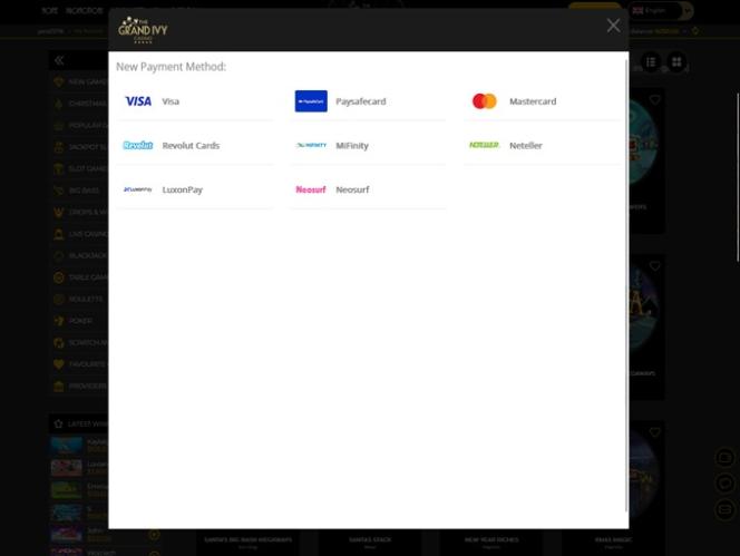 ग्रैंड आइवी कैसीनो Microgaming, Net Entertainment, 1x2gaming, Barcrest, Big Time Gaming, ELK Studios, Evolution Gaming, EYECON, Ezugi, lightningboxgames, Oryx, Play'n GO, Rabcat, Relax Gaming, Thunderkick, Wazdan, Realistic Games, Stakelogic, Pragmatic Play, Nolimit City, Felt Gaming, Red Tiger Gaming, IGT, Spinomenal, Fantasma Games, SYNOT Games, Kalamba, Revolver Gaming, Skywind, Spinmatic, Triple Edge Studios, Northern Lights Gaming, Stormcraft Studios, Switch Studios, Electric Elephant Games, Pocket Games Soft, All41 Studios, Gluck Games, Gameburger Studios, Pulse 8 Studios, Neon Valley Studios, Golden Rock Studios, Spearhead Studios, Swintt, Shuffle Master, SpinPlay Games, HungryBear Gaming, GONG Gaming, Blue Guru Games, Lady Luck Games, Buck Stakes Entertainment, Design Works Gaming, Games Global, 2by2 Gaming, Ainsworth, Bally Technologies, Blueprint Gaming, Endemol Games, Greentube, Leander Games, Merkur Gaming, NextGen, NYX Interactive, Push Gaming, Tom Horn Gaming, WMS, Inspired Gaming, Gaming Realms, SG Interactive, Red7Mobile, CORE Gaming, Scientific Games, Side City Studios, Reel Time Gaming, Authentic Gaming, Iron Dog Studio, Old Skool Studios, Foxium, Betdigital, Just For The Win, Storm Gaming Technology, PearFiction Studios, Apollo Games, Wild Streak Gaming, Slingshot Studios, Fortune Factory Studios, Jade Rabbit Gaming, 4ThePlayer, AvatarUX, Gamevy, Crazy Tooth Studio, NetGaming, High 5 Games, ReelPlay, AGS Interactive, Alchemy Gaming, Black Pudding Games, Hacksaw Gaming, Max Win Gaming, Gold Coin Studios, Half Pixel Studios, SilverBack Gaming, Peter And Sons, Eurostar Studios, Aurum Signature Studios, Armadillo Studios, Lucksome Gaming, Area Vegas, RAW iGaming, Leap Gaming, Wishbone Games, Spribe, Circular Arrow, Print Studios, Gaming Corps, HammerTime Games, Four Leaf Gaming, INO Games, Nailed It! Games, Live 5, Atomic Slot Lab and Neko Games द्वारा संचालित है, और कैसीनो के गेम एक वेब-आधारित इंस्टेंट प्ले प्लेटफ़ॉर्म के माध्यम से उपलब्ध कराए जाते हैं जो खिलाड़ियों को अपने वेब ब्राउज़र के माध्यम से पंजीकरण, बैंकिंग और खेलने की सुविधा देता है। इसके अलावा, एक व्यापक मोबाइल साइट भी उपलब्ध है, जो खिलाड़ियों को अपने स्मार्टफ़ोन और टैबलेट पर गेम खेलने का मौका देती है।
