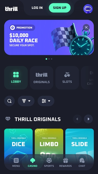 थ्रिल एक स्पोर्ट्सबुक वेबसाइट और ऑनलाइन कैसीनो है जो मुख्य रूप से कनाडा, जर्मनी, ऑस्ट्रिया और न्यूजीलैंड के जुआरियों पर केंद्रित है। यह कोमोरोस संघ के स्वायत्त द्वीप अंजुआन की सरकार द्वारा विनियमित और लाइसेंस प्राप्त है। यह प्लेटफॉर्म केवल अंग्रेजी भाषा में उपलब्ध है।