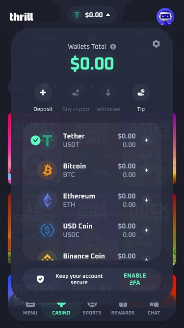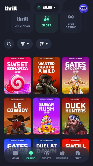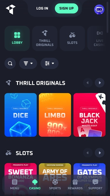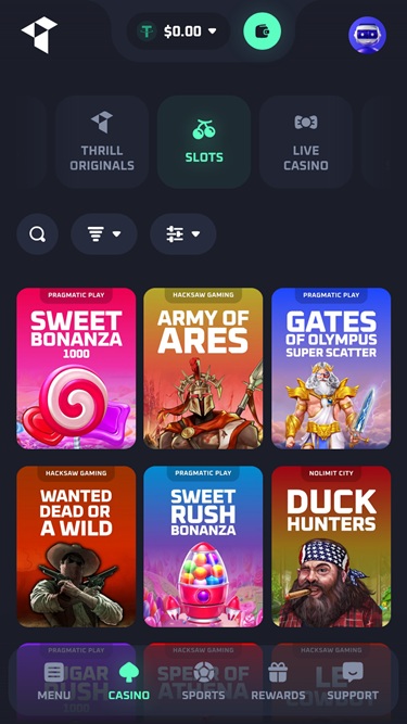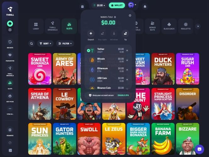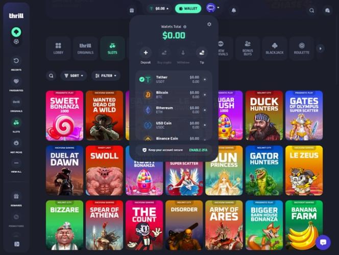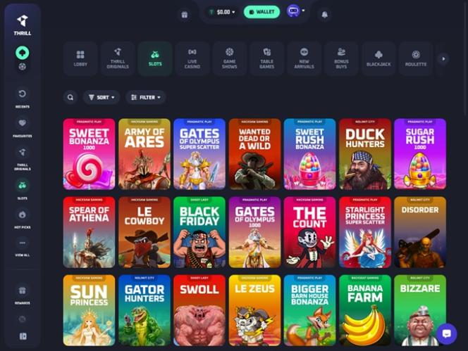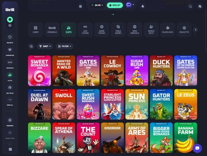 डाइस, लिम्बो, ब्लैकजैक, केनो, प्लिंको , माइंस और अन्य मौलिक टाइटल्स के अलावा, थ्रिल कुछ बेहतरीन ऑनलाइन कैसीनो सॉफ्टवेयर डेवलपर्स के साथ भी सहयोग करता है, और जुआरी उच्च गुणवत्ता वाली जुआ सामग्री और गेम शैलियों की विविधता की उम्मीद कर सकते हैं।
