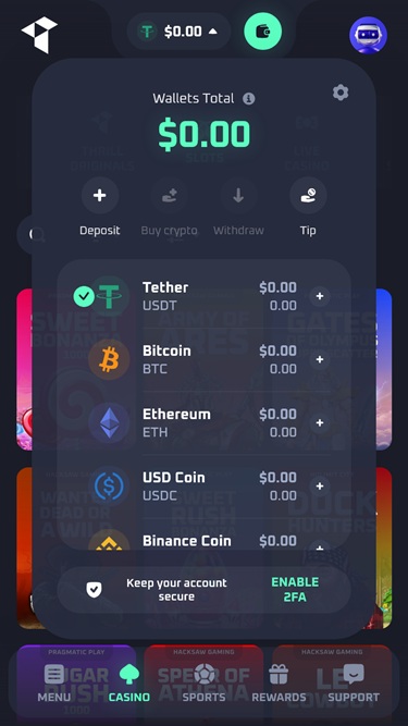 अलग-अलग कौशल स्तर और पसंद वाले खिलाड़ी इसे आसानी से इस्तेमाल कर पाएंगे और इसे आकर्षक और सुलभ पाएंगे। आसान पंजीकरण प्रक्रिया और अन्य सुविधाओं की भी गारंटी है। थ्रिल कैसीनो उत्कृष्ट गेम संग्रह, विभिन्न क्रिप्टोकरेंसी भुगतान विकल्प और एक आकर्षक लॉयल्टी प्लान प्रदान करता है।