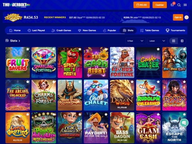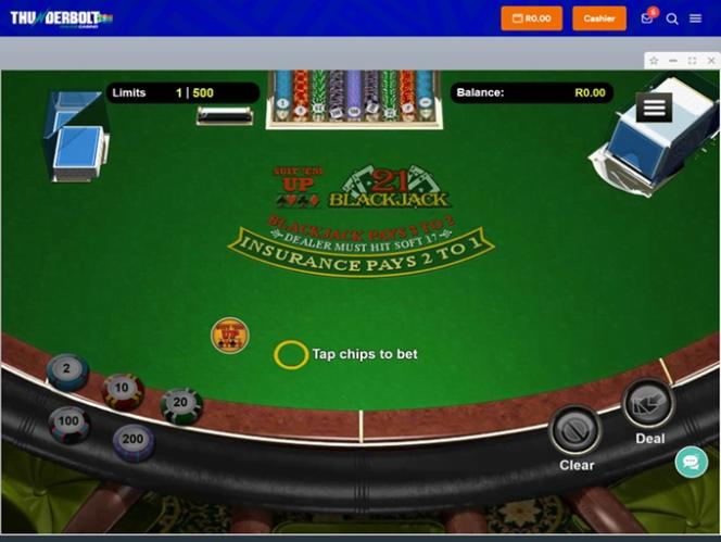 थंडरबोल्ट कैसीनो एक ऑनलाइन सट्टेबाजी साइट है जो 2014 में खोली गई थी और इसे उसी समूह द्वारा चलाया जाता है जो स्प्रिंगबॉक कैसीनो चलाता है। यह साइट दक्षिण अफ़्रीकी गेमिंग बाज़ार पर केंद्रित है और वर्तमान में केवल दक्षिण अफ़्रीका, नामीबिया, स्वाज़ीलैंड, मोज़ाम्बिक और लेसोथो के खिलाड़ियों को ही अनुमति देती है । इस कैसीनो में खेलों की एक प्रभावशाली संख्या और अपेक्षाकृत तेज़ भुगतान प्रक्रिया है, जो इसे ऊपर बताए गए अफ़्रीकी बाज़ारों में रहने वालों के लिए एक उपयुक्त विकल्प बनाती है।