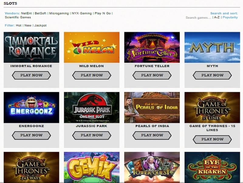 खेलने के लिए ढेरों स्लॉट उपलब्ध हैं, क्योंकि पंटर्स नेट एंटरटेनमेंट, माइक्रोगेमिंग, प्ले'एन गो, एनवाईएक्स, बेटसॉफ्ट और साइंटिफिक गेम्स के स्लॉट्स का अनुभव कर सकते हैं। ये गेम मुख्यतः वीडियो स्लॉट्स के फॉर्मेट में हैं, हालाँकि कई क्लासिक गेम्स भी उपलब्ध हैं। प्रोग्रेसिव जैकपॉट भी उपलब्ध हैं जिनसे आप रीलों के एक ही स्पिन से मालामाल हो सकते हैं, और स्लॉट्स के लिए मोबाइल सपोर्ट भी मौजूद है।
