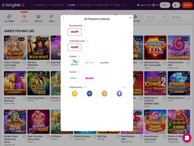 TonyBet Casino पर बैंकिंग विकल्प