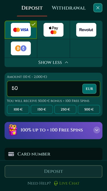 साइट का रंग भी एक मनमोहक हरा है जो समग्र थीम के साथ पूरी तरह मेल खाता है और पृष्ठभूमि में मौजूद सभी रंगीन सामग्री के लिए एक बेहतरीन कंट्रास्टिंग टूल का काम करता है। कार्यक्षमता की बात करें तो, यहाँ सब कुछ काफी अच्छा चल रहा है और कैसीनो के मेनू में उन खिलाड़ियों के लिए एक समर्पित ऐप भी है जो चलते-फिरते गेमिंग का आनंद लेना चाहते हैं।