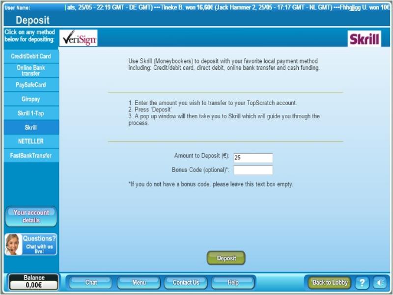 टॉपस्क्रैच कैसीनो Amaya, Net Entertainment, lightningboxgames, Quickspin, Aristocrat, NeoGames and NextGen द्वारा संचालित है, और इसका सॉफ़्टवेयर एक वेब-आधारित इंस्टेंट प्ले प्लेटफ़ॉर्म के माध्यम से प्रदान किया जाता है जो आपको अपने सभी गेमिंग संचालन अपने इंटरनेट ब्राउज़र के माध्यम से करने की अनुमति देता है। वर्तमान में मोबाइल प्ले समर्थित नहीं है, जिसका अर्थ है कि आप केवल अपने डेस्कटॉप कंप्यूटर के माध्यम से ही कैसीनो तक पहुँच सकते हैं।अन्य खेल