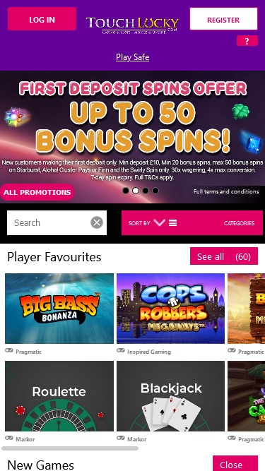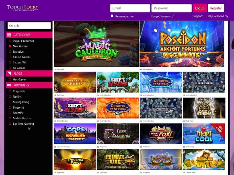 टच लकी कैसीनो में खेलने के लिए ढेरों वीडियो स्लॉट्स के साथ-साथ क्लासिक गेम्स का एक छोटा सा संग्रह भी उपलब्ध है। कैसीनो में प्रोग्रेसिव जैकपॉट भी हैं, जो खिलाड़ियों को किस्मत के साथ तुरंत अमीर बना सकते हैं।