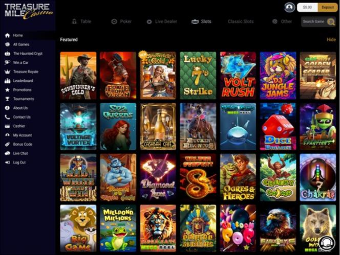 Slots Treasure Mile कैसीनो की लाइब्रेरी का एक बड़ा हिस्सा हैं, कैसीनो सट्टेबाजों को वीडियो और क्लासिक स्लॉट्स दोनों की पेशकश करता है।