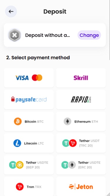 ऑपरेटर पे एंड प्ले विकल्प प्रदान करता है, जो खिलाड़ियों को अपनी पसंदीदा भुगतान विधि चुनने और जमा करने के तुरंत बाद पंजीकरण की अनुमति देता है।