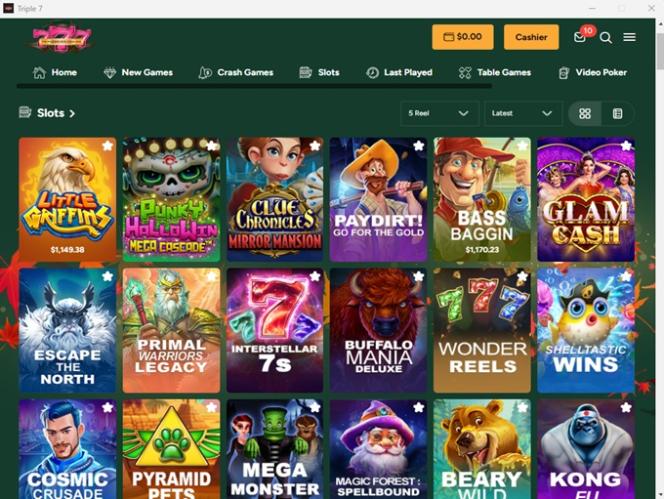 ट्रिपलसेवन कैसीनो में उपलब्ध खेल श्रेणियों की बात करें तो सभी मुख्य श्रेणियाँ मौजूद हैं। स्लॉट गेम्स की भरमार है, इसके बाद टेबल गेम्स (ज़्यादातर रूलेट और ब्लैकजैक के प्रकार) और वीडियो पोकर (बोनस ड्यूसेस वाइल्ड, जैक्स ऑर बेटर , जोकर पोकर, एसेस और एट्स, कुछ उदाहरण हैं) का एक अच्छा संग्रह है। यह जानते हुए कि यह आपूर्तिकर्ता लाइव डीलर रिलीज़ तैयार करने में शामिल नहीं है, यही शैली इस पेशकश में गायब है।