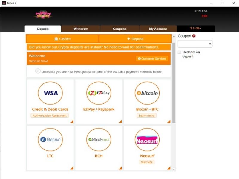 ट्रिपलसेवन कैसीनो की बैंकिंग विधियों के बारे में अधिक जानकारी यहां दी गई है: