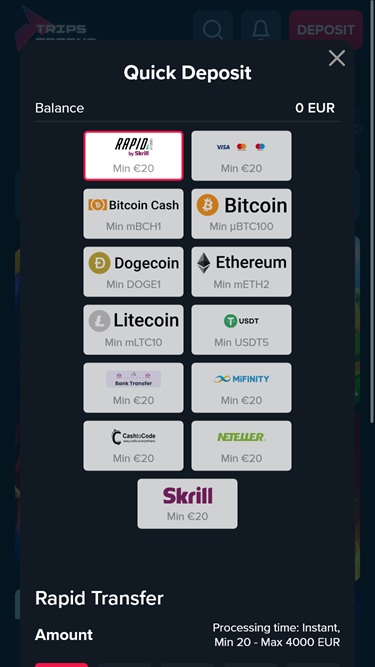 Trips Casino पर बैंकिंग विकल्प