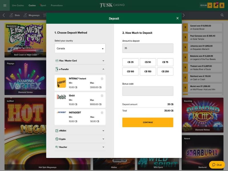 टस्क कैसीनो में आपको एक शानदार वीडियो स्लॉट लाइब्रेरी मिलेगी, जिसमें इस समीक्षा के समय तक 3,400 से ज़्यादा गेम उपलब्ध हैं। माइक्रोगेमिंग, नेटएंट, प्ले'एन गो, एल्क स्टूडियोज़, वाज़दान और दर्जनों अन्य डेवलपर्स के गेम उपलब्ध हैं। गेम्स में अनगिनत थीम हैं और आपको जीतने के लिए अलग-अलग प्रोग्रेसिव जैकपॉट मिलेंगे। मोबाइल स्लॉट भी उपलब्ध हैं, और ज़्यादातर स्लॉट लाइब्रेरी को आप चाहें तो अपने फ़ोन या टैबलेट पर भी खेल सकते हैं।