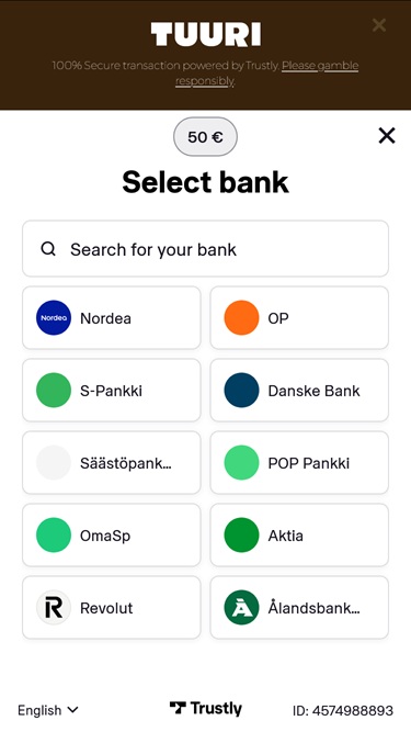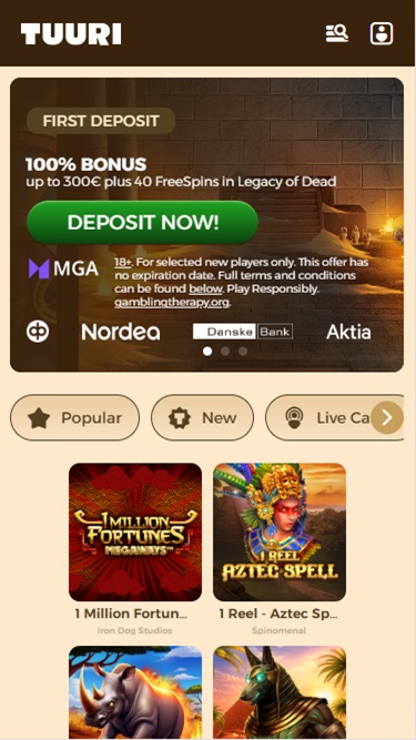 फ़िनलैंड के कैसीनो खिलाड़ी यहाँ समय बिताना पसंद करेंगे। डिज़ाइनरों ने अपेक्षाकृत सरल थीम चुनी है, जिसमें सफ़ेद पृष्ठभूमि और भूरे रंग के आकर्षक रंग पैलेट हैं। चूँकि इसमें कोई अनावश्यक प्रभाव या अतिशयोक्ति नहीं है, इसलिए आप उम्मीद कर सकते हैं कि सभी पृष्ठ और गेम अविश्वसनीय रूप से तेज़ी से लोड होंगे।