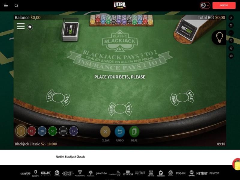 अल्ट्राकैसीनो Microgaming, Net Entertainment, BetSoft, 1x2gaming, Big Time Gaming, ELK Studios, Evolution Gaming, lightningboxgames, Oryx, Play'n GO, playson, Quickspin, Rabcat, Relax Gaming, Yggdrasil, Wazdan, Booming Games, Pragmatic Play, Nolimit City, Felt Gaming, Red Tiger Gaming, Fantasma Games, FunFair, Kalamba, Spin Games, Triple Edge Studios, Northern Lights Gaming, Stormcraft Studios, Switch Studios, OneTouch, Electric Elephant Games, Pocket Games Soft, Bulletproof Games, All41 Studios, Gameburger Studios, Pulse 8 Studios, Neon Valley Studios, Golden Rock Studios, Spearhead Studios, Swintt, SpinPlay Games, Real Dealer Studios, Blue Guru Games, Buck Stakes Entertainment, Elysium Studios, Games Global, 2by2 Gaming, bluberi, Push Gaming, Gamomat, Bally Wulff, Iron Dog Studio, Foxium, Just For The Win, Reflex Gaming, PearFiction Studios, Slingshot Studios, Golden Hero, Fortune Factory Studios, RubyPlay, 4ThePlayer, AvatarUX, Crazy Tooth Studio, ReelPlay, Japan Technicals Games, Alchemy Gaming, Black Pudding Games, Snowborn Games, Boomerang Studios, Hacksaw Gaming, Max Win Gaming, Gold Coin Studios, Bang Bang Games, Half Pixel Studios, SilverBack Gaming, Peter And Sons, Eurostar Studios, Aurum Signature Studios, Armadillo Studios, Area Vegas, Leap Gaming, Spribe, Print Studios, Gaming Corps, HammerTime Games, INO Games, Nailed It! Games, Atomic Slot Lab, Neko Games, Oros Gaming and Indigo Magic द्वारा संचालित है और कैसीनो के गेम एक वेब-आधारित प्लेटफ़ॉर्म के माध्यम से प्रदान किए जाते हैं जो आपके पसंदीदा इंटरनेट ब्राउज़र के माध्यम से लोड होता है। साइट नेविगेट करने में आसान है, दिखने में सुंदर है, और इसमें बिल्ट-इन मोबाइल सपोर्ट है, जिससे आप चाहें तो फ़ोन या टैबलेट पर भी खेल सकते हैं।Blackjack