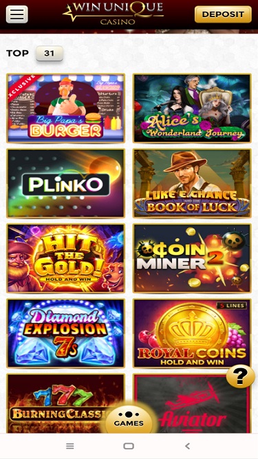 यूनिक कैसीनो Microgaming, Net Entertainment, BetSoft, Evolution Gaming, Habanero Systems, playson, Rabcat, Rival, Vivo Gaming, Yggdrasil, Endorphina, Wazdan, Arrows Edge, Booming Games, Nolimit City, Booongo, LuckyStreak, Spinomenal, Red Rake Gaming, Fugaso, Platipus Gaming, Triple Edge Studios, BGAMING, Switch Studios, Bulletproof Games, All41 Studios, Gluck Games, Mascot Gaming, Gameburger Studios, Pulse 8 Studios, Neon Valley Studios, SpinPlay Games, Mancala Gaming, SmartSoft Gaming, Real Dealer Studios, GONG Gaming, Caleta Gaming, Eurasian Gaming, Games Global, Reevo, 2by2 Gaming, Merkur Gaming, Tom Horn Gaming, Old Skool Studios, Foxium, Just For The Win, Reflex Gaming, Storm Gaming Technology, PearFiction Studios, Slingshot Studios, Fortune Factory Studios, Jade Rabbit Gaming, RubyPlay, AvatarUX, Gamevy, Crazy Tooth Studio, ReelPlay, Alchemy Gaming, BB Games, Snowborn Games, Boomerang Studios, Hacksaw Gaming, Gold Coin Studios, Bang Bang Games, Half Pixel Studios, Arcadem, Triple Cherry, Peter And Sons, Eurostar Studios and Aurum Signature Studios द्वारा संचालित है और कैसीनो का प्लेटफ़ॉर्म एक वेब-आधारित क्लाइंट के माध्यम से संचालित होता है, जिसके लिए किसी सॉफ़्टवेयर को डाउनलोड करने की आवश्यकता नहीं होती है। साइट लगभग औसत दर्जे की दिखती है, जो निराशाजनक है क्योंकि कैसीनो के नाम को देखते हुए, मैं कुछ अलग या शानदार देखने की उम्मीद कर रहा था। कैसीनो मोबाइल प्ले को भी पूरी तरह से सपोर्ट करता है, इसलिए आप अपने स्मार्टफोन या टैबलेट पर, जहाँ भी डेटा कनेक्शन हो, दांव लगा सकते हैं।