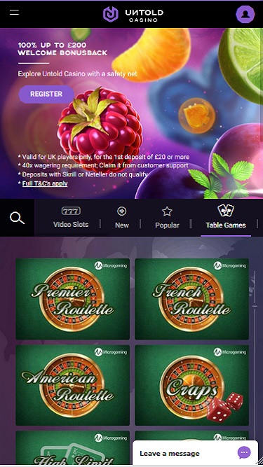 अनटोल्ड कैसीनो एक ऑनलाइन सट्टेबाजी साइट है जिसका स्वामित्व और संचालन वायरल इंटरएक्टिव लिमिटेड द्वारा किया जाता है। यह कैसीनो 2018 में लॉन्च हुआ था और इसका लुक और फील बेहद आकर्षक है जो डेस्कटॉप और मोबाइल, दोनों प्लेटफॉर्म पर समान रूप से अच्छा खेलता है। इस साइट पर लॉन्च किए गए गेम्स की एक छोटी लाइब्रेरी है, लेकिन यह एक बेहतरीन लाइव डीलर अनुभव प्रदान करता है जो आपके समय के लायक है।