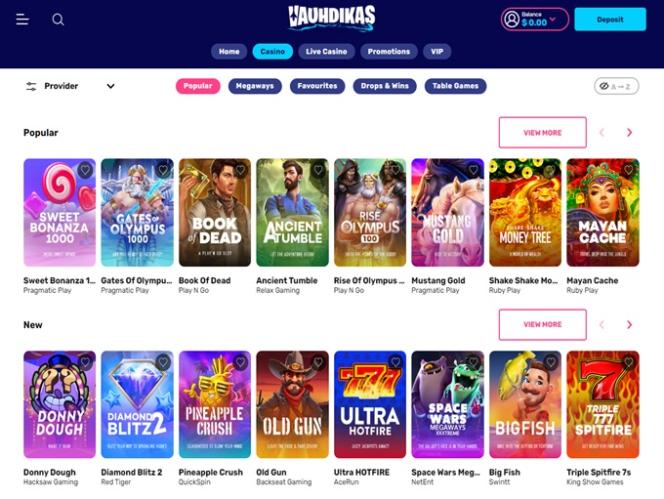 हालाँकि हम वेबसाइट की प्रस्तुति और पहुँच के मामले में वाउहदिकास कैसीनो टीम की सराहना करते हैं, फिर भी हमें किसी भी जुआ ब्रांड के सबसे ज़रूरी पहलू की जाँच करनी होगी। बेशक, हम गेम के चयन और सॉफ़्टवेयर प्रदाताओं की विविधता के बारे में बात कर रहे हैं।