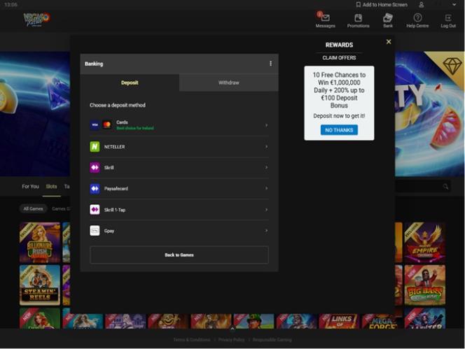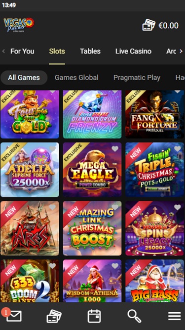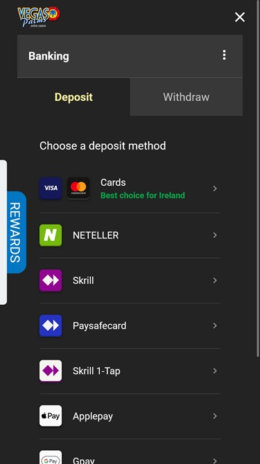 वेगास पाम्स कैसीनो Microgaming, Net Entertainment, Evolution Gaming, Ezugi, Rabcat, Pragmatic Play, Red Tiger Gaming, Triple Edge Studios, Northern Lights Gaming, Stormcraft Studios, Switch Studios, Electric Elephant Games, All41 Studios, Gameburger Studios, Pulse 8 Studios, Neon Valley Studios, SpinPlay Games, Real Dealer Studios, GONG Gaming, On Air Entertainment, Buck Stakes Entertainment, Games Global, Old Skool Studios, Foxium, Just For The Win, PearFiction Studios, Wild Streak Gaming, Slingshot Studios, Fortune Factory Studios, Crazy Tooth Studio, Alchemy Gaming, Snowborn Games, Gold Coin Studios, Half Pixel Studios, Eurostar Studios and Aurum Signature Studios द्वारा संचालित है, जो अपने ग्राहकों को सैकड़ों टेबल गेम, स्लॉट और अन्य कैसीनो गेम प्रदान करता है। यह कैसीनो वेब-आधारित और डाउनलोड करने योग्य सॉफ़्टवेयर क्लाइंट, दोनों के माध्यम से उपलब्ध है। दोनों में कोई खास अंतर नहीं है, और ज़्यादातर सट्टेबाज़ वेब क्लाइंट ही चुनेंगे, क्योंकि इसमें डाउनलोड की ज़रूरत नहीं होती। जो लोग अपने मोबाइल उपकरणों पर खेलना पसंद करते हैं, वे स्मार्टफ़ोन और टैबलेट को सपोर्ट करने वाली मोबाइल साइट के ज़रिए ऐसा कर सकते हैं।