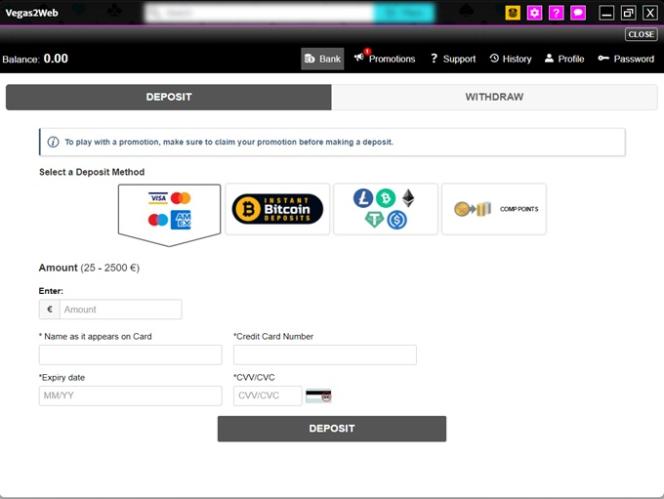 नीचे वेगास2वेब कैसीनो में वर्तमान में पेश किए जा रहे प्रमोशनों की सूची दी गई है।