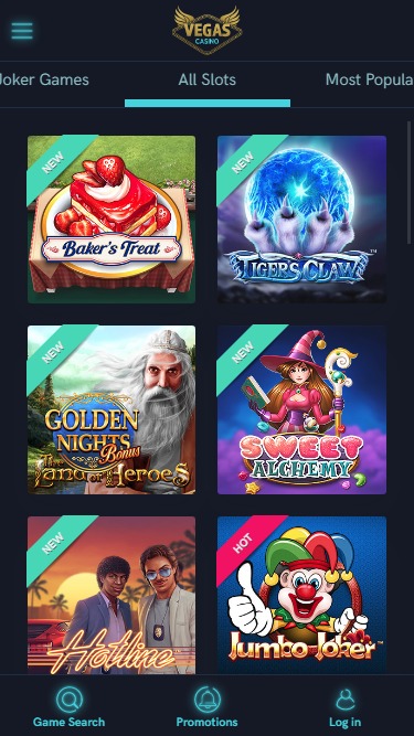 वेगास कैसीनो में दर्जनों वीडियो स्लॉट और कुछ क्लासिक गेम उपलब्ध हैं। खिलाड़ियों को बेटसॉफ्ट के 3D गेम और नेट एंटरटेनमेंट के बड़े नामी गेम मिलेंगे। बड़े इनामों की तलाश करने वालों को प्रोग्रेसिव जैकपॉट भी मिलेंगे।