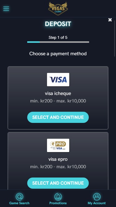 वेगासकैसीनो में एक वीआईपी प्रोग्राम है जहाँ खिलाड़ी अपनी जमा राशि का एक हिस्सा नकद के रूप में वापस पाते हैं। नए खिलाड़ी सिल्वर वीआईपी के रूप में प्रवेश करते हैं और उन्हें 10% वापस मिलता है, जबकि रेड डायमंड वीआईपी को 30% नकद वापस मिलता है।