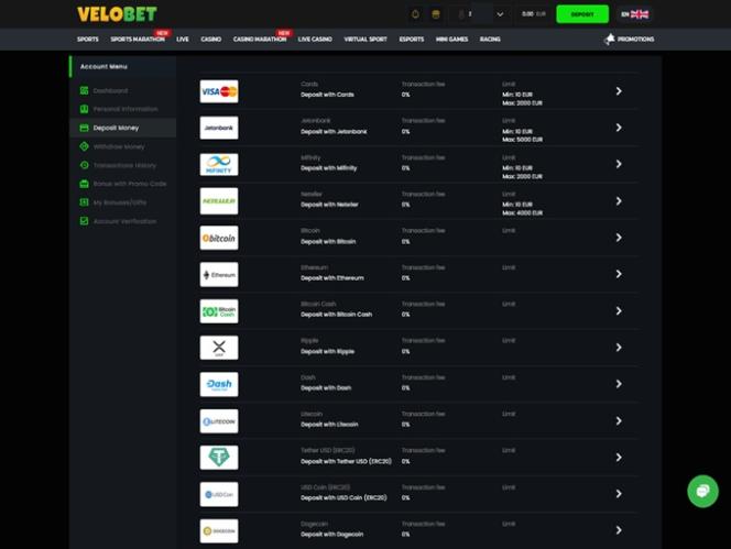 खिलाड़ी जमा और निकासी के लिए विभिन्न व्यापक रूप से उपयोग किए जाने वाले विकल्पों पर भरोसा कर सकते हैं। कैशियर लोकप्रिय ई-वॉलेट, भुगतान कार्ड, साथ ही क्रिप्टोकरेंसी भुगतान विधियाँ और बिटकॉइन, बिटकॉइन कैश, लाइटकॉइन, एथेरियम आदि सहित लोकप्रिय डिजिटल मुद्राएँ प्रदान करता है।