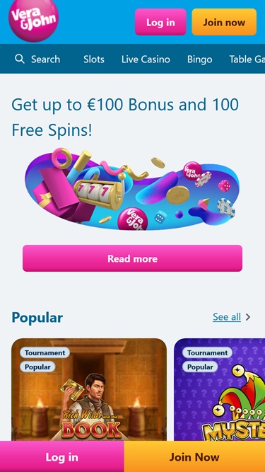 वेरा जॉन एक इंटरनेट कैसीनो है जिसकी स्थापना 2011 में हुई थी और इसका स्वामित्व और संचालन डुमरका गेमिंग लिमिटेड द्वारा किया जाता है। कैसीनो खेलों की एक बड़ी लाइब्रेरी और जीत के तेजी से भुगतान के लिए जाना जाता है, भले ही साइट मासिक आधार पर गैर-प्रगतिशील भुगतान को सीमित करती है।कैसीनो जानकारी