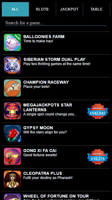 वेरी वेगास मोबाइल कैसीनो में खेलने के लिए कई स्लॉट उपलब्ध हैं, और खिलाड़ियों को कई तरह के वीडियो स्लॉट के साथ-साथ क्लासिक गेम्स का भी संग्रह मिलेगा। ये गेम्स अक्सर उन लोकप्रिय स्लॉट्स से लिए गए होते हैं जो आपको ज़मीनी कैसीनो में देखने को मिलते हैं, और आपके मोबाइल डिवाइस पर कुछ बेहतरीन थीम और सुविधाएँ प्रदान करते हैं। बेशक, इसकी एक कमी यह है कि इस मोबाइल कैसीनो में गेमिंग का चयन उद्योग के कुछ अन्य मोबाइल-फ्रेंडली कैसीनो जितना बड़ा नहीं है। IGT का मेगाजैकपॉट्स प्रोग्रेसिव भी जीतने के लिए उपलब्ध है।