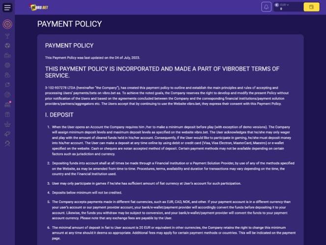 लेकिन शुरू करने से पहले यह समझना ज़रूरी है कि वाइब्रोबेट कैसीनो फिलहाल बिना लाइसेंस के चल रहा है , क्योंकि उनकी वेबसाइट पर ऐसा कोई प्रमाण पत्र नहीं है जो यह दर्शाता हो कि उनके पास लाइसेंस है। हालांकि, इसका यह मतलब नहीं है कि यह वेबसाइट भरोसेमंद नहीं है, लेकिन हम आपको सावधानी बरतने की सलाह देते हैं , इसलिए साइट से जुड़ने से पहले इस बात का ध्यान रखें।