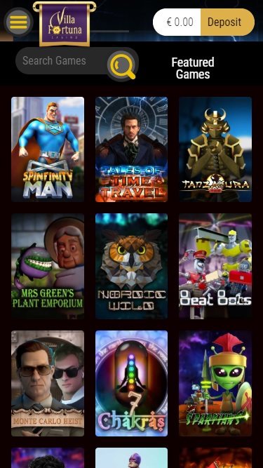 विला फ़ोर्टुना कैसीनो में कई वीडियो और क्लासिक स्लॉट उपलब्ध हैं, जिनमें सॉसिफ़ाई गेम्स भी शामिल हैं जो खिलाड़ियों को ऐसे कई गेम्स देते हैं जो दुनिया भर के सट्टेबाजी बाज़ारों में अक्सर देखने को नहीं मिलते। गेम्स की गुणवत्ता अलग-अलग है, और लाइब्रेरी में कुछ बेहतरीन गेम्स भी शामिल हैं। खिलाड़ियों को लाइब्रेरी में प्रोग्रेसिव जैकपॉट भी मिलेंगे, जो किसी भी समय बड़े नकद पुरस्कार दे सकते हैं। मोबाइल स्लॉट भी उपलब्ध हैं, जिससे स्मार्टफोन और टैबलेट के ज़रिए खेला जा सकता है।