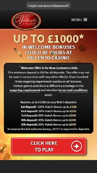 नीचे विलेंटो लास वेगास कैसीनो में पेश किए जा रहे वर्तमान प्रमोशनों की सूची दी गई है।