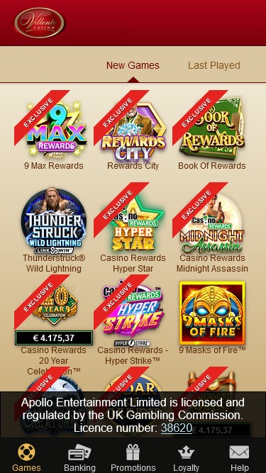 विलेंटो लास वेगास कैसीनो की स्थापना 2006 में हुई थी और यह एक बेहद सम्मानित ऑनलाइन कैसीनो बन गया है, जिसकी अच्छी बैंकिंग प्रणाली, विशाल गेमिंग लाइब्रेरी और खिलाड़ियों के प्रति निष्पक्ष व्यवहार करने वाले उत्कृष्ट कैसीनो प्रबंधन के लिए सराहना की जाती है। इस कैसीनो का संचालन कैसीनो रिवार्ड्स द्वारा किया जाता है, जो कई अन्य ऑनलाइन कैसीनो भी चलाता है, जैसे कि बेहद प्रतिष्ठित ग्रैंड मोंडियल।कैसीनो जानकारी