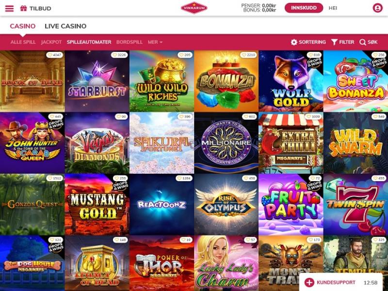 Vinnarum Casino Microgaming, Net Entertainment, Playtech, BetSoft, 1x2gaming, Barcrest, Big Time Gaming, ELK Studios, Evolution Gaming, lightningboxgames, Novomatic, Play'n GO, playson, Quickspin, Rabcat, Relax Gaming, Thunderkick, Yggdrasil, Wazdan, Realistic Games, Stakelogic, Pragmatic Play, Nolimit City, Felt Gaming, Red Tiger Gaming, Fantasma Games, Kalamba, Triple Edge Studios, Northern Lights Gaming, Stormcraft Studios, Electric Elephant Games, Bulletproof Games, All41 Studios, Gluck Games, Gameburger Studios, Pulse 8 Studios, TrueLab Games, Shuffle Master, HungryBear Gaming, Games Global, Aristocrat, Bally Technologies, Blueprint Gaming, Greentube, Leander Games, NextGen, Push Gaming, WMS, Inspired Gaming, SG Interactive, Gamomat, Red7Mobile, CORE Gaming, Reel Time Gaming, Bally Wulff, Iron Dog Studio, Foxium, Betdigital, Just For The Win, Reflex Gaming, Storm Gaming Technology, PearFiction Studios, Wild Streak Gaming, Slingshot Studios, Fortune Factory Studios, STHLM Gaming, 4ThePlayer, AvatarUX, Gamevy, Crazy Tooth Studio, High 5 Games, ReelPlay, Rarestone Gaming, BB Games, Black Pudding Games, Boomerang Studios, Bang Bang Games, SilverBack Gaming, Peter And Sons, Eurostar Studios and Lucksome Gaming द्वारा संचालित है, जो इसे सैकड़ों खेलों से युक्त एक समृद्ध गेमिंग लाइब्रेरी प्रदान करता है। खिलाड़ियों को यह कैसीनो एक वेब-आधारित प्लेटफ़ॉर्म के माध्यम से सुलभ लगेगा, जो ग्राहकों को सीधे अपने वेब ब्राउज़र के माध्यम से गेम खेलने का अवसर प्रदान करता है।