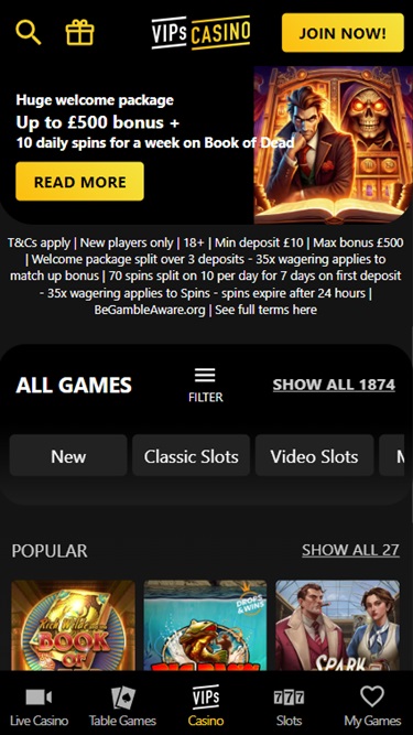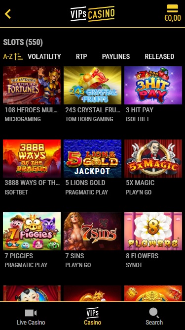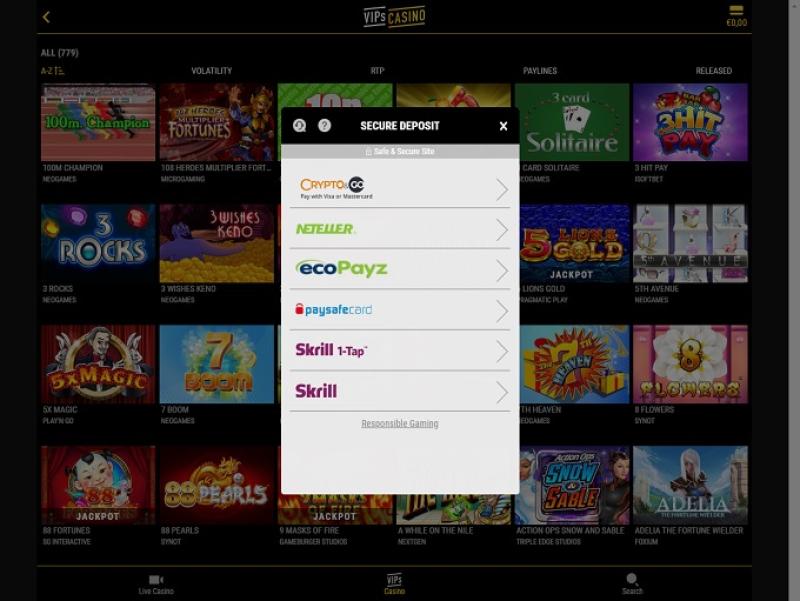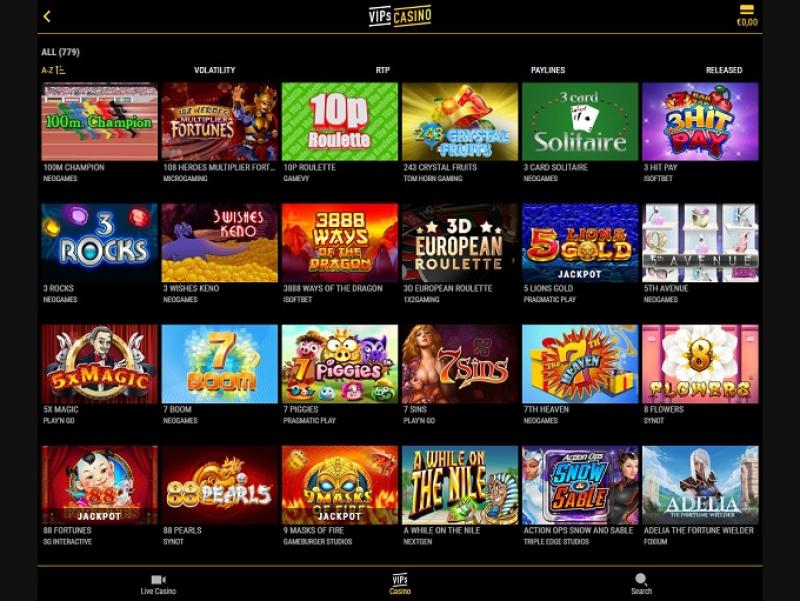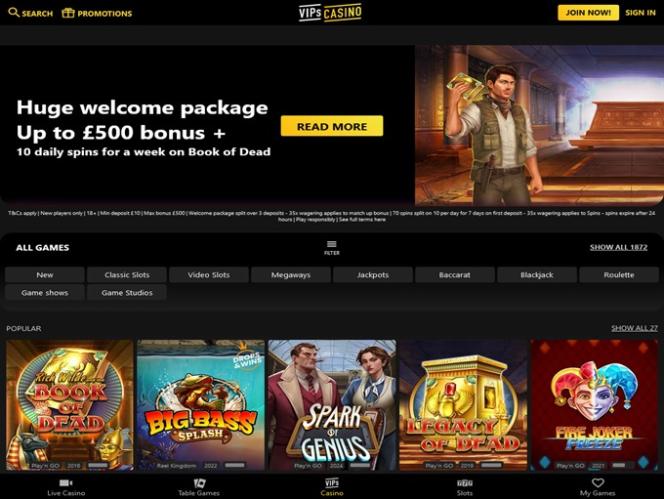 वीआईपीज़ कैसीनो एक ऑनलाइन सट्टेबाजी साइट है जिसका स्वामित्व वीआईपीज़ कैसीनो गेमिंग लिमिटेड के पास है। यह साइट एस्पायर ग्लोबल द्वारा संचालित है और इसके पास माल्टा से गेमिंग लाइसेंस है। यह कैसीनो मोबाइल-प्रथम दृष्टिकोण रखता है और अपनी साइट पर खेलों की एक बहुत अच्छी लाइब्रेरी बनाकर काम करता है, जिससे हमें हज़ारों गेम मिलते हैं। दुर्भाग्य से, यह साइट उतनी विशिष्ट नहीं है जितना इसका नाम आपको लगता है, क्योंकि बैंकिंग संबंधी शर्तें इसे सर्वश्रेष्ठ बनने से रोकती हैं।