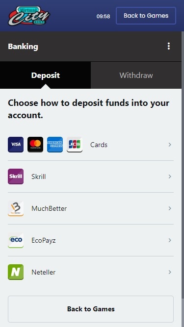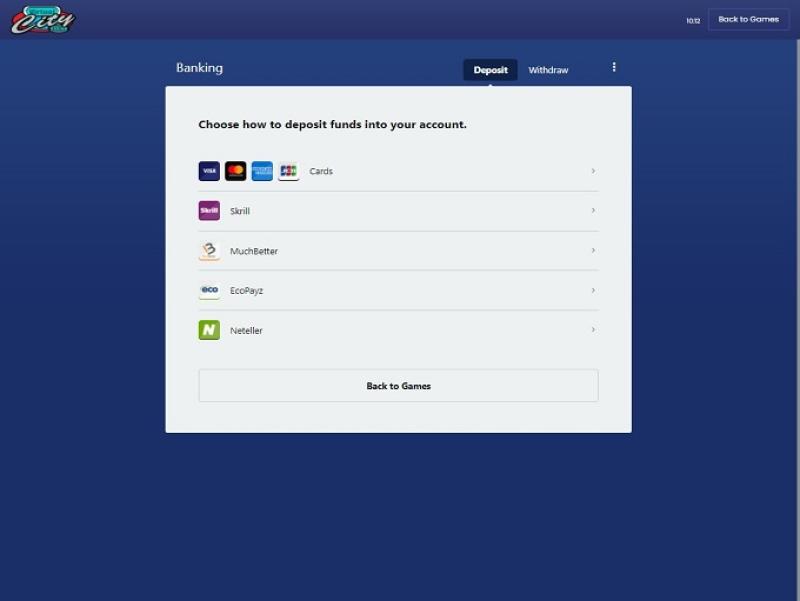 Virtual City Casino पर बैंकिंग विकल्प