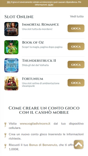 वोग्लिया डि विंसेरे पर एक ज़िम्मेदार गेमिंग पेज है, जो कम उम्र में जुए की लत और उससे लड़ने की जानकारी देता है। कंपनी ने खिलाड़ियों की सुरक्षा के लिए स्व-बहिष्कार और जमा सीमाएँ भी निर्धारित की हैं, और इतालवी गेमिंग सहायता समूहों के लिंक भी उपलब्ध हैं।