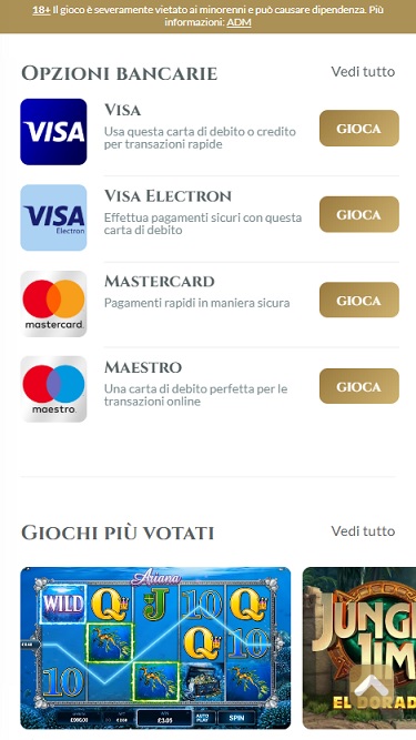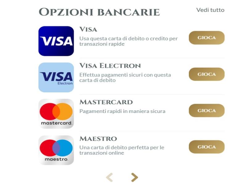 Voglia di Vincere पर बैंकिंग विकल्प