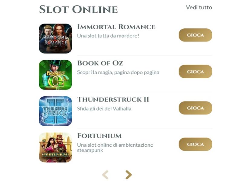 400 से ज़्यादा स्लॉट उपलब्ध हैं, जिनमें डेवलपर ने माइक्रोगेमिंग और उनके सहयोगी सॉफ़्टवेयर डेवलपर्स के गेम्स को एकीकृत किया है। स्लॉट लाइब्रेरी में वीडियो और क्लासिक स्लॉट शामिल हैं, और ढेरों सुविधाएँ और थीम मौजूद हैं। जीतने के लिए कोई प्रोग्रेसिव जैकपॉट उपलब्ध नहीं है, लेकिन मोबाइल स्लॉट उपलब्ध हैं, जिनसे आप डेटा कनेक्शन के साथ कहीं से भी रीलों को स्पिन कर सकते हैं।