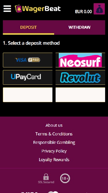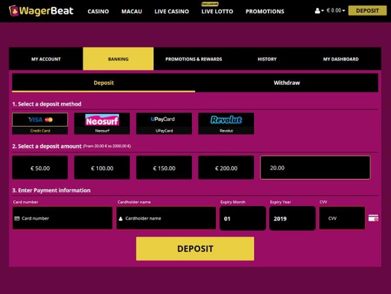 Wager Beat Casino पर बैंकिंग विकल्प