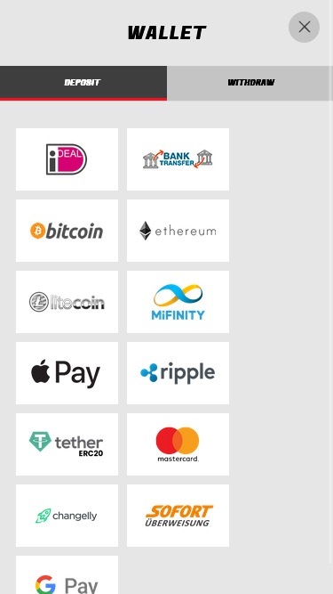 पारंपरिक भुगतान विधियों के अलावा, कैसीनो क्रिप्टोकरेंसी का उपयोग करके जमा और निकासी करने का भी समर्थन करता है।