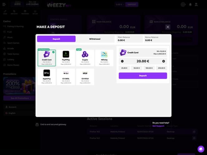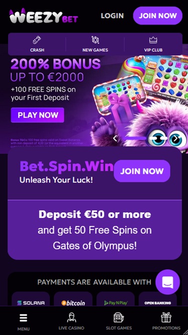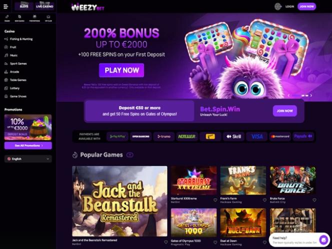 WeezyBet.com एक ऑनलाइन कैसीनो है जो कोमोरोस संघ के स्वायत्त द्वीप अंजुआन की सरकार द्वारा विनियमित और लाइसेंस प्राप्त है। यह ऑपरेटर फ़िनलैंड, डेनमार्क, जर्मनी, नीदरलैंड, इटली, ग्रीस और कनाडा के खिलाड़ियों पर केंद्रित है। फिर भी, अगर आप किसी अन्य जुआ क्षेत्र से हैं, तो भी बने रहें क्योंकि यह ब्रांड पहली नज़र में ही बेहद आकर्षक लगता है।