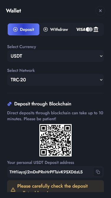 खिलाड़ी प्रत्येक निकासी अनुरोध से पहले अपने क्रिप्टोकरेंसी वॉलेट पते को अपडेट कर सकते हैं।
