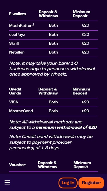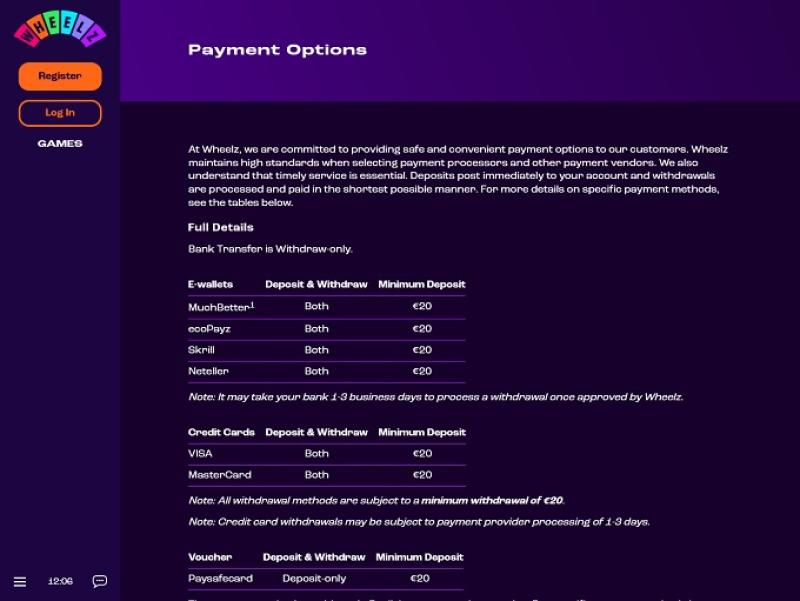 नीचे व्हील्ज़ कैसीनो में वर्तमान में पेश किए जा रहे प्रमोशनों की सूची दी गई है।