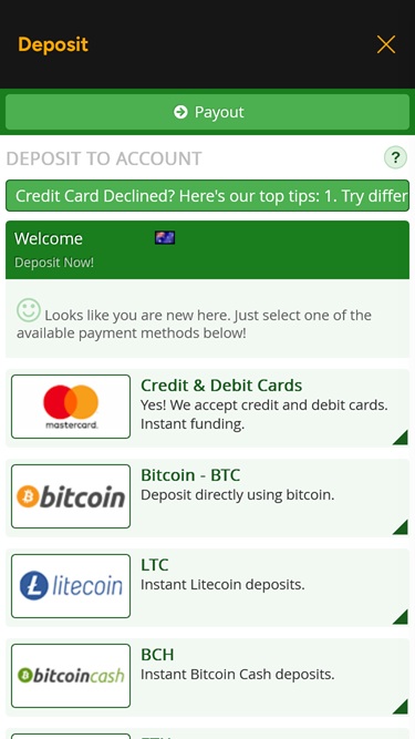 - कुछ देशों के खिलाड़ियों को केवल क्रिप्टो बैंकिंग विकल्पों का उपयोग करके जमा करने की अनुमति है।