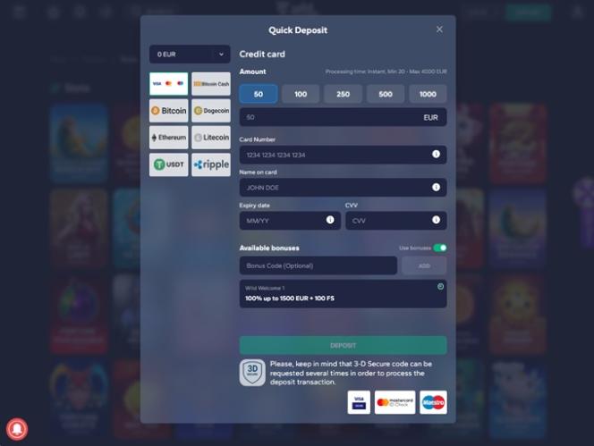 WildTornado Casino पर बैंकिंग विकल्प