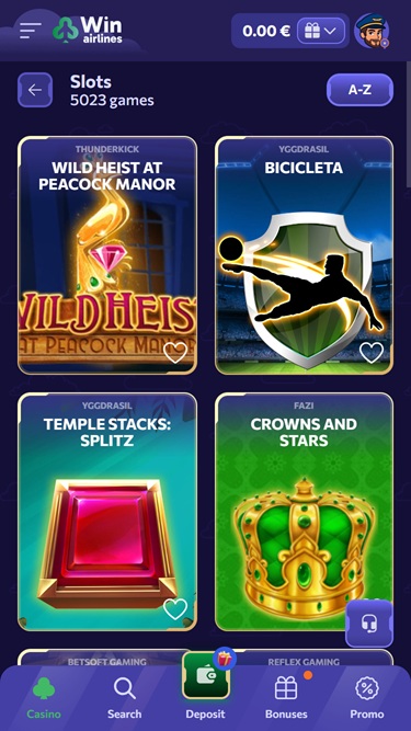 वेबसाइट की थीम एक काल्पनिक लग्जरी एयरलाइन पर आधारित है, इसलिए स्वाभाविक रूप से स्क्रीन पर कई विमान और खूबसूरत एयर होस्टेस दिखाई देंगी। मखमली बनावट वाला बैकग्राउंड एक शानदार जगह होने का एहसास दिलाता है और गेमिंग के जीवंत फीचर्स के साथ एक बेहतरीन कंट्रास्ट बनाता है।