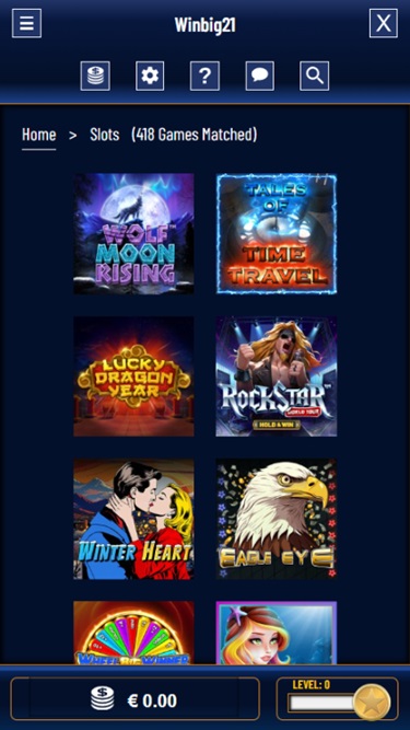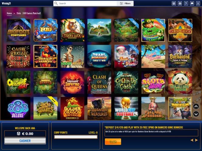 विनबिग 21 कैसीनो में क्लासिक और आधुनिक वीडियो स्लॉट्स की अच्छी-खासी संख्या उपलब्ध है, जिनमें अलग-अलग थीम वाले कई तरह के गेम उपलब्ध हैं। कैसीनो में कुछ मोबाइल स्लॉट्स और प्रोग्रेसिव जैकपॉट भी उपलब्ध हैं, लेकिन अगर आप स्लॉट्स पर खूब पैसा कमाते हैं तो आपको अपनी जीत के लिए शुभकामनाएँ।