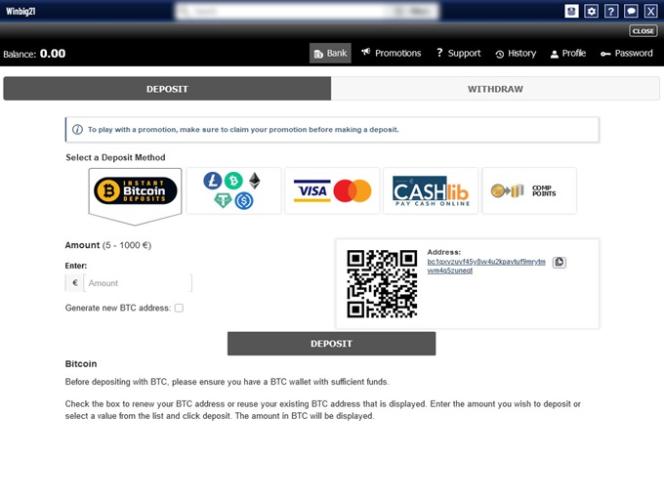 विनबिग 21 कैसीनो की बैंकिंग प्रणाली देखने में तो ठीक-ठाक लगती है, जहाँ वीज़ा, मास्टरकार्ड, स्क्रिल और क्लिक2पे के ज़रिए लेन-देन की सुविधा उपलब्ध है। दुर्भाग्य से, कैसीनो द्वारा खिलाड़ियों को जीत की राशि का भुगतान न करने का एक लंबा इतिहास रहा है, जो कि एक कैसीनो द्वारा किया जाने वाला सबसे बड़ा पाप है।