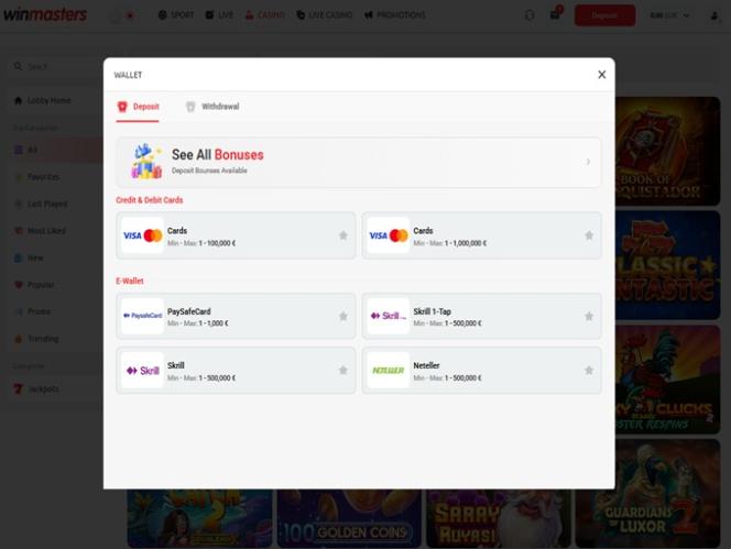 विनमास्टर्स कैसीनो Microgaming, Net Entertainment, Playtech, 1x2gaming, Big Time Gaming, ELK Studios, Evolution Gaming, Ezugi, Genesis Gaming, iSoftBet, lightningboxgames, Play'n GO, playson, Relax Gaming, Thunderkick, Endorphina, Wazdan, Realistic Games, Betgames, Booming Games, Stakelogic, Pragmatic Play, Nolimit City, Felt Gaming, Red Tiger Gaming, Red Rake Gaming, Skillzzgaming, Fantasma Games, SYNOT Games, Kalamba, Revolver Gaming, Skywind, Spinmatic, Spadegaming, Triple Edge Studios, Northern Lights Gaming, Stormcraft Studios, Switch Studios, OneTouch, Electric Elephant Games, Pocket Games Soft, Dreamtech Gaming, All41 Studios, Gluck Games, Gameburger Studios, Pulse 8 Studios, Neon Valley Studios, Golden Rock Studios, Spearhead Studios, Swintt, SpinPlay Games, HungryBear Gaming, Real Dealer Studios, GONG Gaming, Blue Guru Games, Lady Luck Games, Buck Stakes Entertainment, Games Global, Amusnet Interactive, Wizard Games, 2by2 Gaming, Ash Gaming, Blueprint Gaming, CT Interactive, Leander Games, Merkur Gaming, Pariplay, Push Gaming, Tom Horn Gaming, Reel Time Gaming, Authentic Gaming, BF Games, Bally Wulff, Iron Dog Studio, Old Skool Studios, Foxium, Just For The Win, Storm Gaming Technology, PearFiction Studios, Wild Streak Gaming, Slingshot Studios, Fortune Factory Studios, Jade Rabbit Gaming, STHLM Gaming, 4ThePlayer, Gamevy, Crazy Tooth Studio, ReelPlay, Zonelock, Alchemy Gaming, Rarestone Gaming, Plank Gaming, Black Pudding Games, Snowborn Games, Hacksaw Gaming, Max Win Gaming, Gold Coin Studios, Half Pixel Studios, SilverBack Gaming, Aurum Signature Studios, Armadillo Studios, FlipLuck, Area Vegas, Leap Gaming, GoldenRace, Kiron, Wishbone Games, LiveG24, Print Studios, HammerTime Games, Four Leaf Gaming, INO Games, Nailed It! Games, Live 5, Neko Games, Reel Kingdom, Oros Gaming and JVL द्वारा संचालित है, और इसके कैसीनो गेम वेब-आधारित प्लेटफॉर्म के साथ-साथ मोबाइल साइट के माध्यम से भी प्रदान किए जाते हैं।
