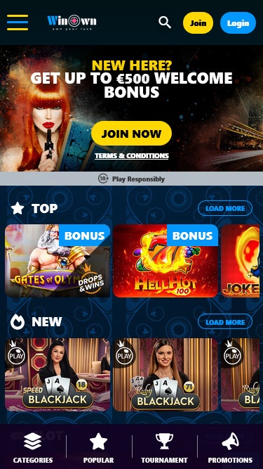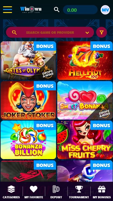 कैसीनो प्लेटफ़ॉर्म न्यूनतम, सौंदर्य की दृष्टि से आकर्षक और खिलाड़ी-उन्मुख है। हमारी पहली धारणा यह थी कि Winown में भव्यता झलकती है और सभी उपलब्ध सामग्री सुव्यवस्थित और ब्राउज़ करने में आसान है।